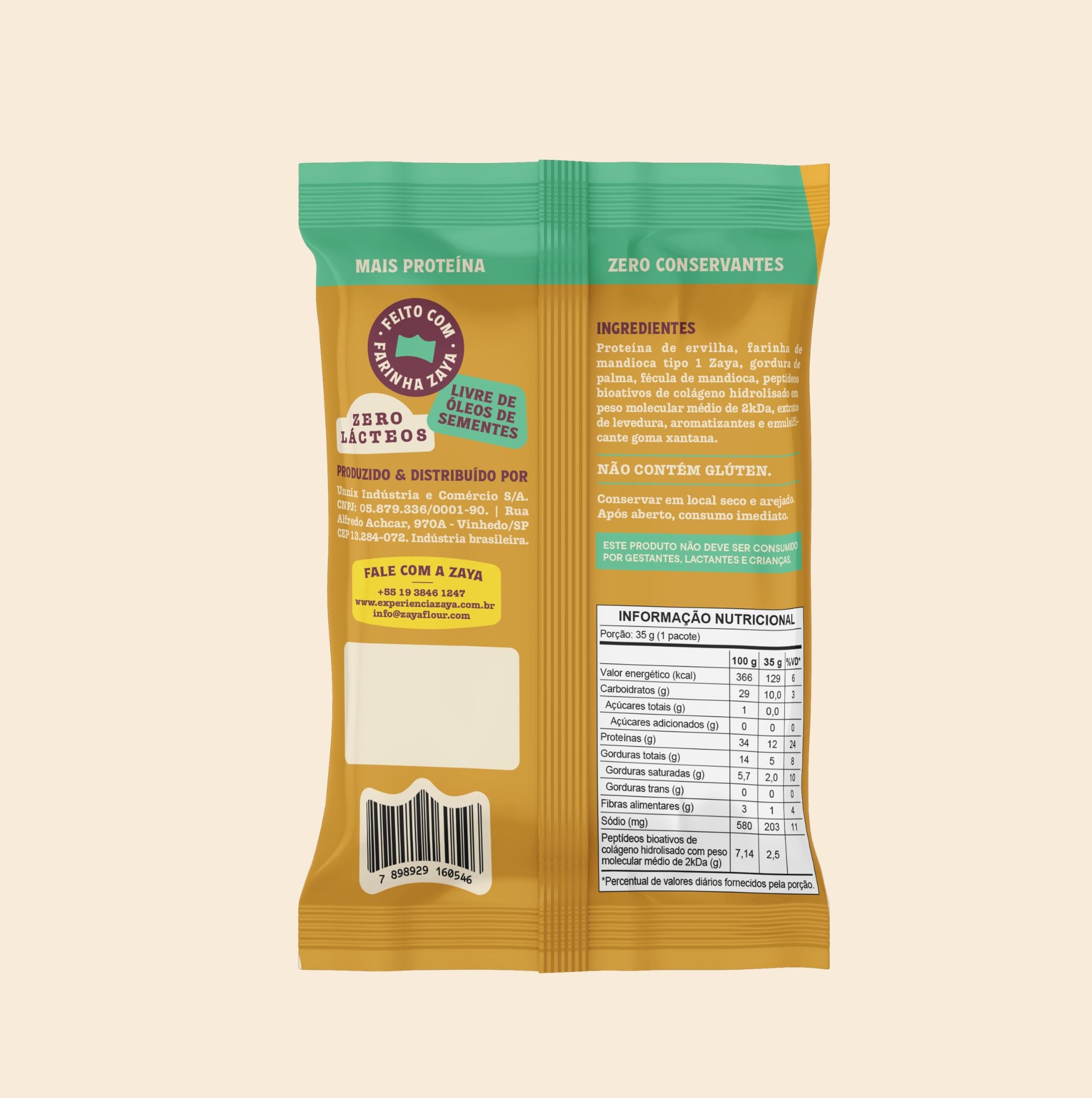 Entregam 12g de proteína e 2,5g de colágeno por porção, sem lupa de alto teor e sem glúten.